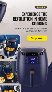 Description: “Discover versatile cooking with our 6.5L Smart LCD Fully Automatic Air Fryer. Featuring touch controls and multi-functional capabilities, this smart appliance simplifies meal preparation with precise cooking options.”