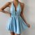 “Step out in style with our Blue Summer V-Neck Halter Mini Dress, perfect for a night out or a glamorous evening event. Featuring a plunging V-neckline and a chic halter design, this sexy mini dress accentuates your figure while providing a sleek, sultry look. The lightweight fabric keeps you cool and comfortable, making it ideal for summer nights at the club or parties. Shop now to add a bold and trendy piece to your evening wardrobe with this eye-catching halter dress.”