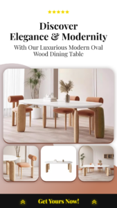 • Modern Elegance Redefined – Our oval wood dining table is where modern design meets timeless elegance. Transform your dining space into a statement of sophistication.